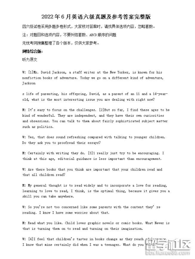 上半年六月的大學(xué)生英語六級考試目前已經(jīng)結(jié)束了一個月左右的時間了,各位考生對自己的考試成績是否已經(jīng)有了一個預(yù)估水平了呢?下面是出國留學(xué)網(wǎng)為大家整理的2022上半年英語六級的真題和答案,快來一起看看吧!