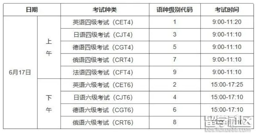 英語四級(jí)口語考試(CET-SET4)考試時(shí)間為5月20日,英語六級(jí)口語考試(CET-SET6)考試時(shí)間為5月21日。具體場次安排如下: