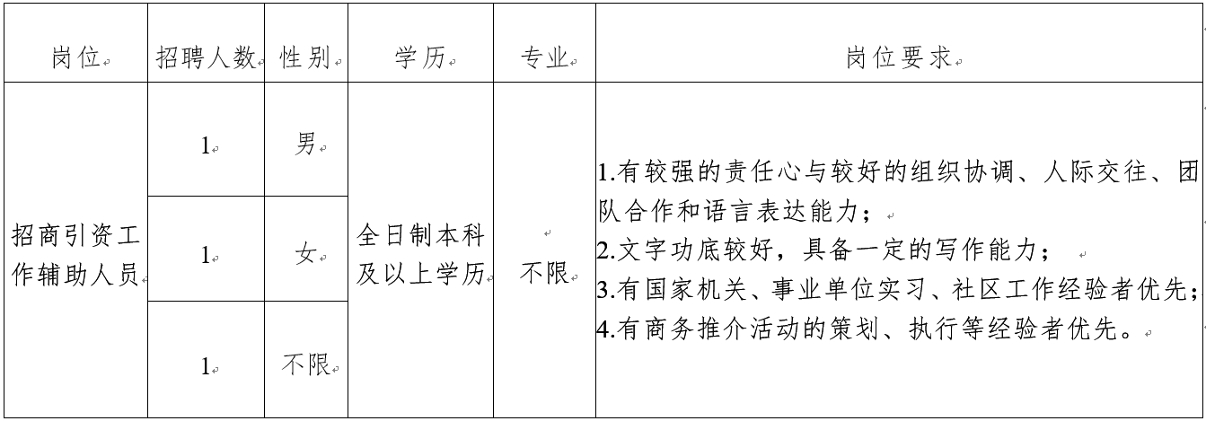 本次招聘招商引資工作輔助人員3人,招聘崗位及要求為: