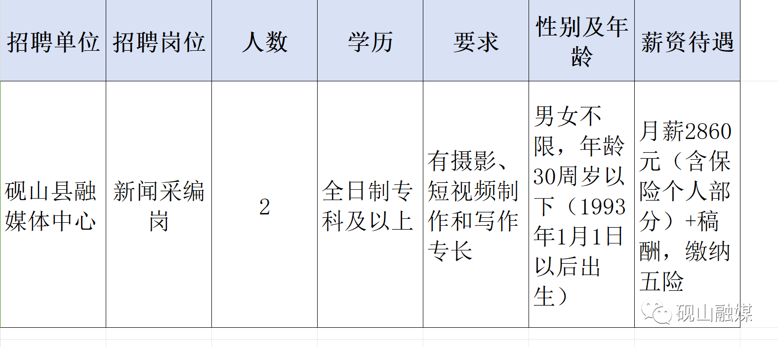 硯山縣融媒體中心社會購買服務(wù)人員招聘公告