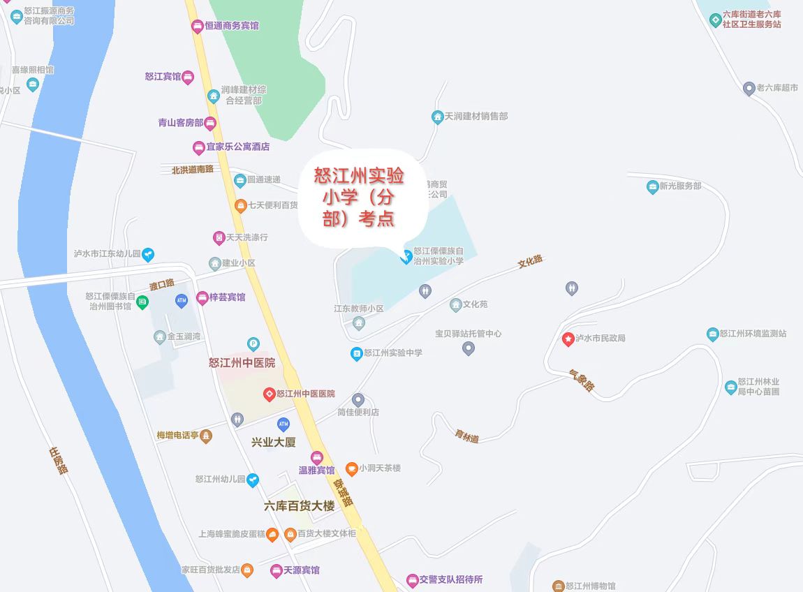 怒江考區(qū)共設(shè)有州民族中學(xué)、州職教中心、州實(shí)驗(yàn)小學(xué)(分部)、瀘水市第一中學(xué)、瀘水市第一完全小學(xué)(新城校區(qū))5個(gè)考點(diǎn)??键c(diǎn)學(xué)校具體地址及地圖指南如下: