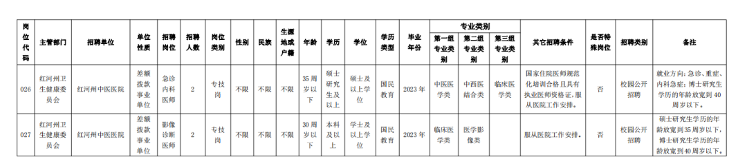 紅河州中醫(yī)醫(yī)院2023年事業(yè)單位校園公開招聘公告