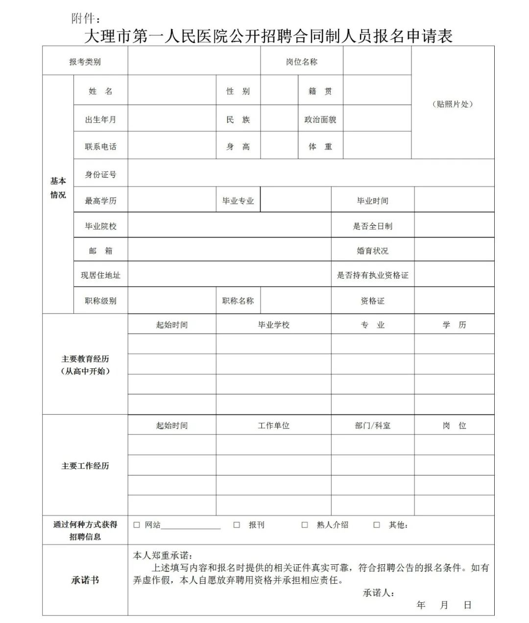 (一)現(xiàn)場報名:到大理市第一人民醫(yī)院人力資源部現(xiàn)場報名。