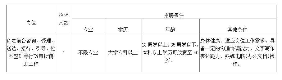 為充實(shí)桂林市政務(wù)服務(wù)中心服務(wù)人員力量,提高政務(wù)服務(wù)效率質(zhì)量,根據(jù)《關(guān)于印發(fā)桂林市市直機(jī)關(guān)事業(yè)單位編外聘用人員管理規(guī)定的通知》(市人社發(fā)〔2016〕132號(hào))要求,現(xiàn)決定面向社會(huì)公開招聘編外行政輔助人員1人?,F(xiàn)將有關(guān)事項(xiàng)公告如下: