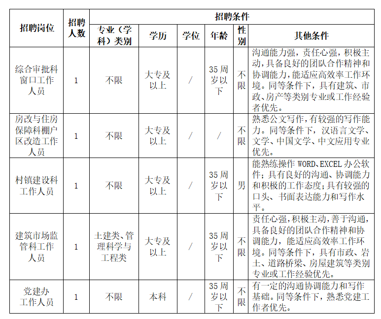 本次公開招聘相關(guān)崗位工作人員5名,具體招聘崗位、人數(shù)、資格條件如下: