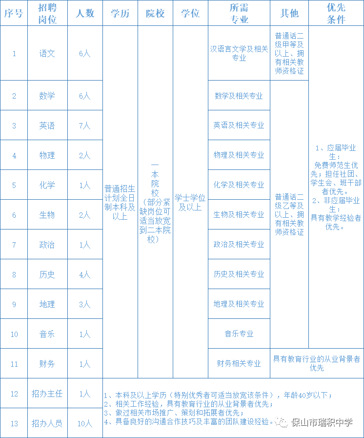 保山瑞積中學(xué)2021年第一次公開招聘教職工公告