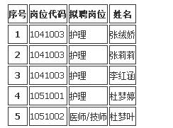 備注:護(hù)理崗位(崗位代碼1041003)筆試成績排名第一考生楊瑞麗因懷孕延期體檢,待延期體檢合格后再按程序辦理聘用。