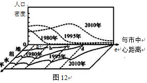 圖12為我國(guó)不同年份“某城市地租水平與人口密度變化示意圖”,讀圖回答第23~24小題。