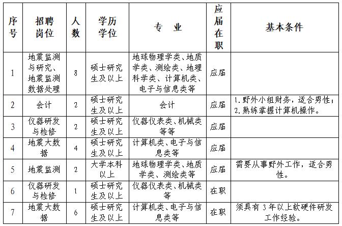 本次招聘由中國(guó)地震局統(tǒng)一組織,涉及30余個(gè)用人單位近400個(gè)崗位(其他崗位詳見(jiàn)