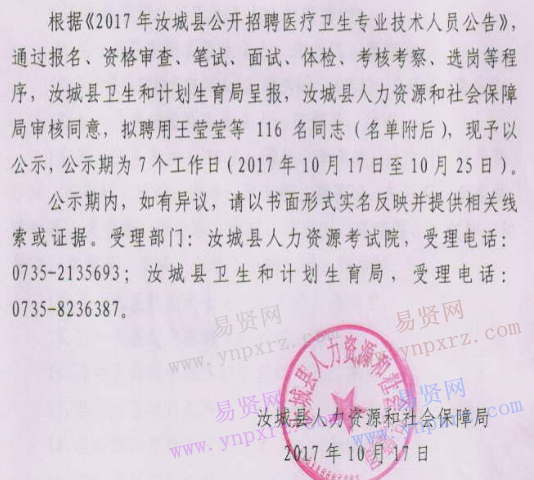 2017年汝城縣公開招聘醫(yī)療衛(wèi)生專業(yè)技術(shù)人員擬聘用人員名單(共116人)
