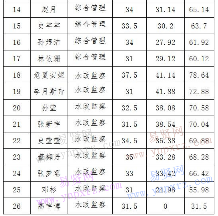 按照北京市水務局2017年公開招聘工作有關要求,經(jīng)報名、筆試、資格審核、面試等工作程序,現(xiàn)將參加我單位2017年第二次公開招聘人員考試成績予以公示。