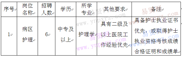 我院因床位擴張,需向社會招聘工作人員6名。