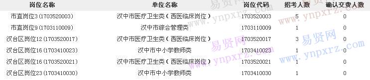 除急需緊缺專業(yè)和國家確定的集中連片特殊困難地區(qū)的縣、山區(qū)縣及艱苦邊遠(yuǎn)縣區(qū)不設(shè)開考比例的招聘崗位外,經(jīng)匯總復(fù)核,漢中市有6個崗位的報名確認(rèn)人數(shù)未達(dá)到規(guī)定比例,不予開考。