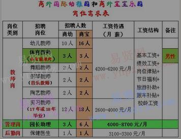 3、其他要求:有一定的教齡,具有文藝特長、幼兒英語教學(xué)和蒙氏教學(xué)經(jīng)驗(yàn)的同等情況下優(yōu)先考慮。