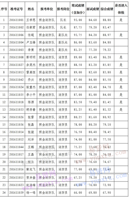 現(xiàn)將2016年銅川市公安局下屬市照金消防隊公開招聘消防員綜合成績及進入體檢人員有關(guān)事項公告如下,請進入體檢的考生按公告要求參加體檢。