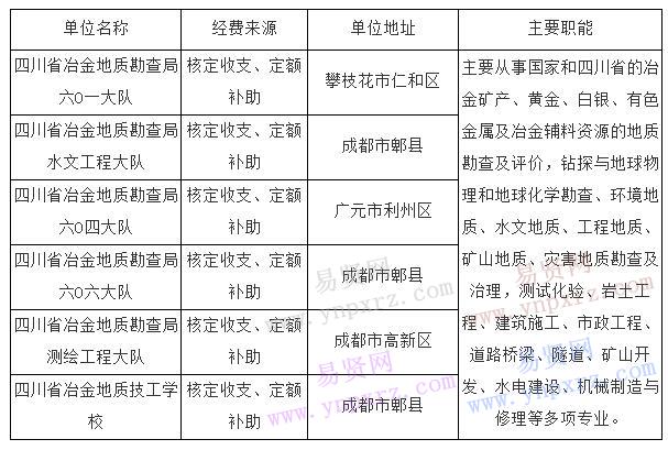 招聘單位、名額見附表《四川省冶金地質(zhì)勘查局2016年度直接考核招聘地勘相關(guān)專業(yè)技術(shù)人員崗位和條件要求一覽表》。