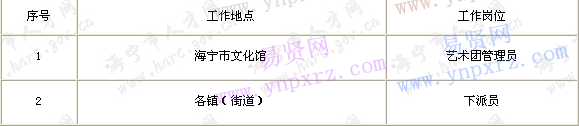 3.工作崗位詳見附件1 ,具體崗位由海寧市文化館統(tǒng)籌安排。