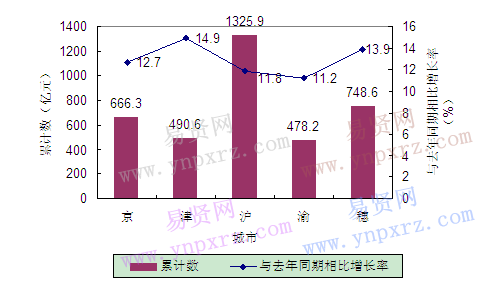 Ⅰ.2003年第一季度五個(gè)城市的GDP總量均實(shí)現(xiàn)了兩位數(shù)增長(zhǎng)