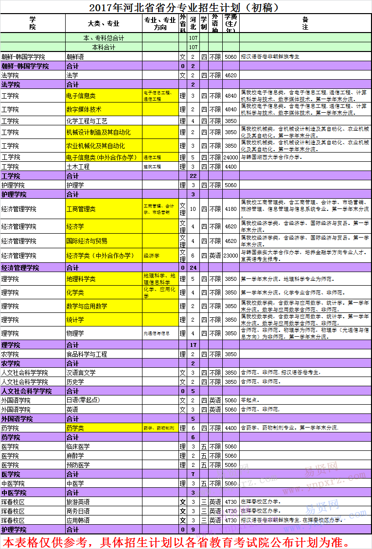 延邊大學(xué)2017年河北省招生計劃