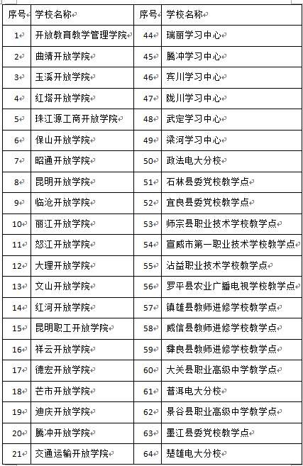 云南開放大學(xué)開放教育專科招生學(xué)校