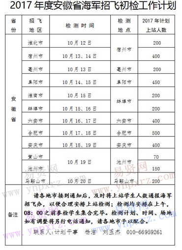 根據(jù)海軍2017年度招飛工作安排,為切實做好初檢預(yù)選工作,現(xiàn)將有關(guān)問題明確如下: