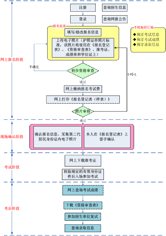 2015年云南省在職人員攻讀碩士專業(yè)學(xué)位全國聯(lián)考網(wǎng)上報名和現(xiàn)場確認(rèn)流程圖