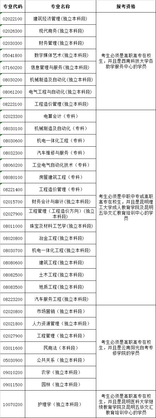 4、下列專(zhuān)業(yè)屬自學(xué)考試和非學(xué)歷證書(shū)考試相結(jié)合的專(zhuān)業(yè),部分課程需參加非學(xué)歷證書(shū)考試,取得非學(xué)歷證書(shū)考試相關(guān)課程合格成績(jī)后,可頂替以下專(zhuān)業(yè)相應(yīng)課程的學(xué)分。