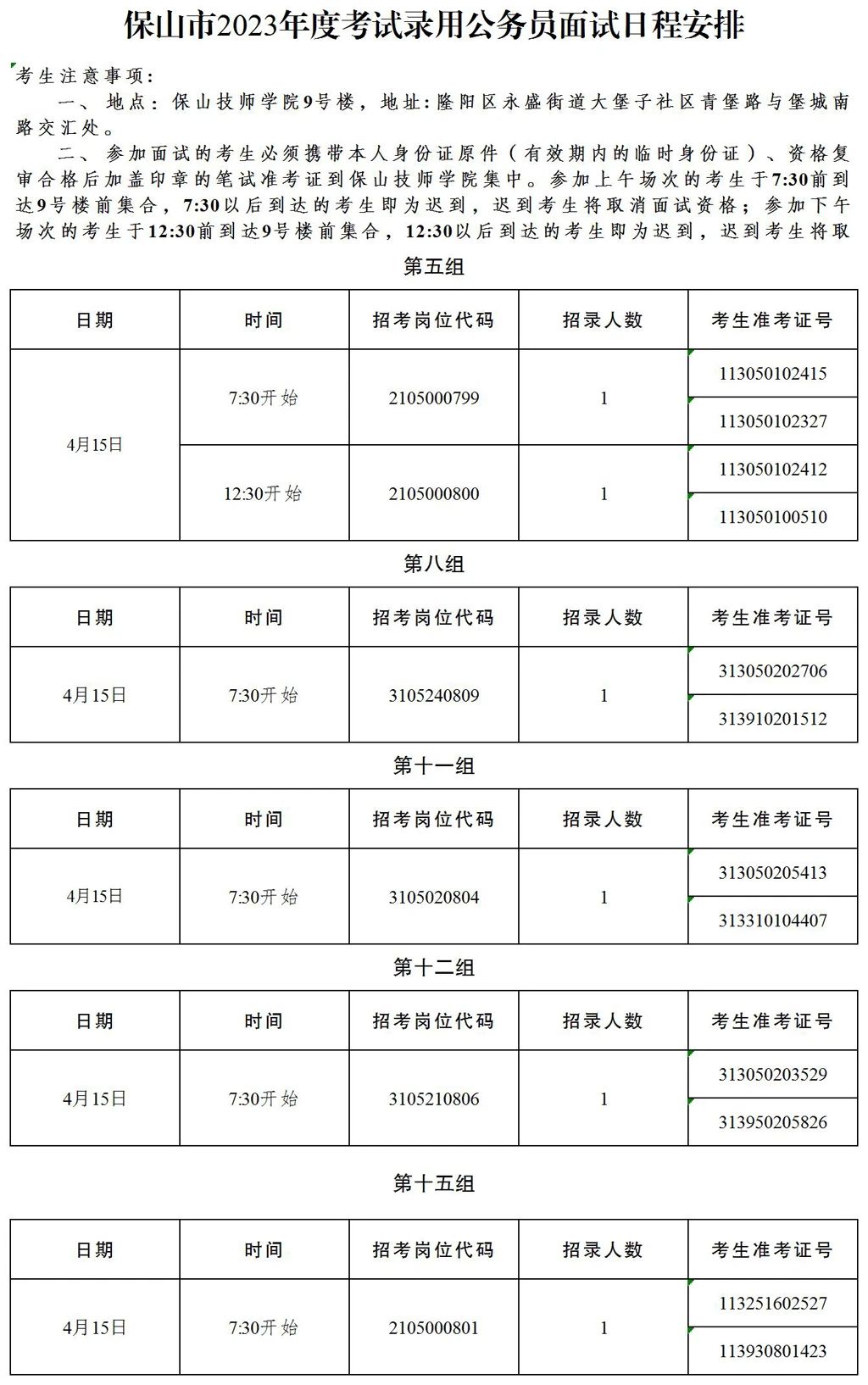 參加上午場(chǎng)次面試的考生請(qǐng)于2023年4月15日上午7:30前到達(dá)面試地點(diǎn);上午7:30以后到達(dá)的考生即為遲到,將取消面試資格。
