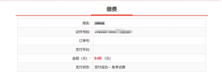 減免申請審核通過后,報名系統(tǒng)“支付狀態(tài)”欄顯示“支付成功—免考試費”字樣,如已繳納報名費的,在確認(rèn)工作結(jié)束后,收費平臺按原繳費途徑退費;未繳費的報考者可不再繳費。如報考者在申請后未按下圖顯示,為確保正常參考,可先行支付報名費,待減免申請確認(rèn)后將進(jìn)行退費。