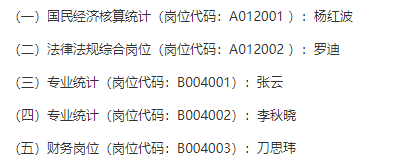 根據(jù)《普洱市統(tǒng)計(jì)局2019年公開遴選公務(wù)員(參公管理人員)公告》(第1號(hào)),普洱市統(tǒng)計(jì)局2019年公開遴選已完成報(bào)名、筆試、面試、經(jīng)歷業(yè)績(jī)?cè)u(píng)價(jià)、體檢、考察等程序?,F(xiàn)將擬遴選人員公示如下: