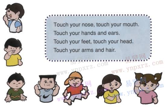 (2)聽錄音,讓學(xué)生跟著重復(fù),邊說邊加動(dòng)作。