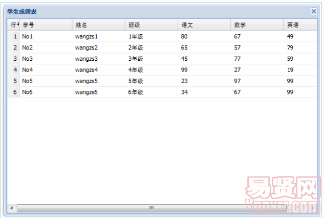 var myData = [ [ 'No1', 'wangzs1', '1年級', 80, 67, 49 ],