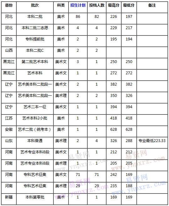 河北東方學(xué)院2017年美術(shù)類專業(yè)錄取分?jǐn)?shù)線