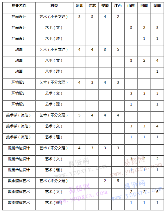 浙江師范大學(xué)2017年美術(shù)類本科招生專業(yè)含美術(shù)學(xué)(師范)、視覺(jué)傳達(dá)設(shè)計(jì)、環(huán)境設(shè)計(jì)、產(chǎn)品設(shè)計(jì)、動(dòng)畫、數(shù)字媒體藝術(shù),面向河北、江蘇、安徽、江西、山東、河南、湖南等省份招生。我校不單獨(dú)組織美術(shù)???,承認(rèn)以上招生省份美術(shù)統(tǒng)考成績(jī)。