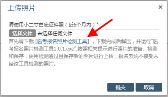 (一)考生在網(wǎng)報(bào)系統(tǒng)上傳個(gè)人小二寸白底證件照時(shí),應(yīng)按照系統(tǒng)提示內(nèi)容下載并運(yùn)行“醫(yī)考報(bào)名照片檢測(cè)工具”,網(wǎng)報(bào)系統(tǒng)只接受經(jīng)該工具檢測(cè)通過且保存后的照片進(jìn)行上傳。