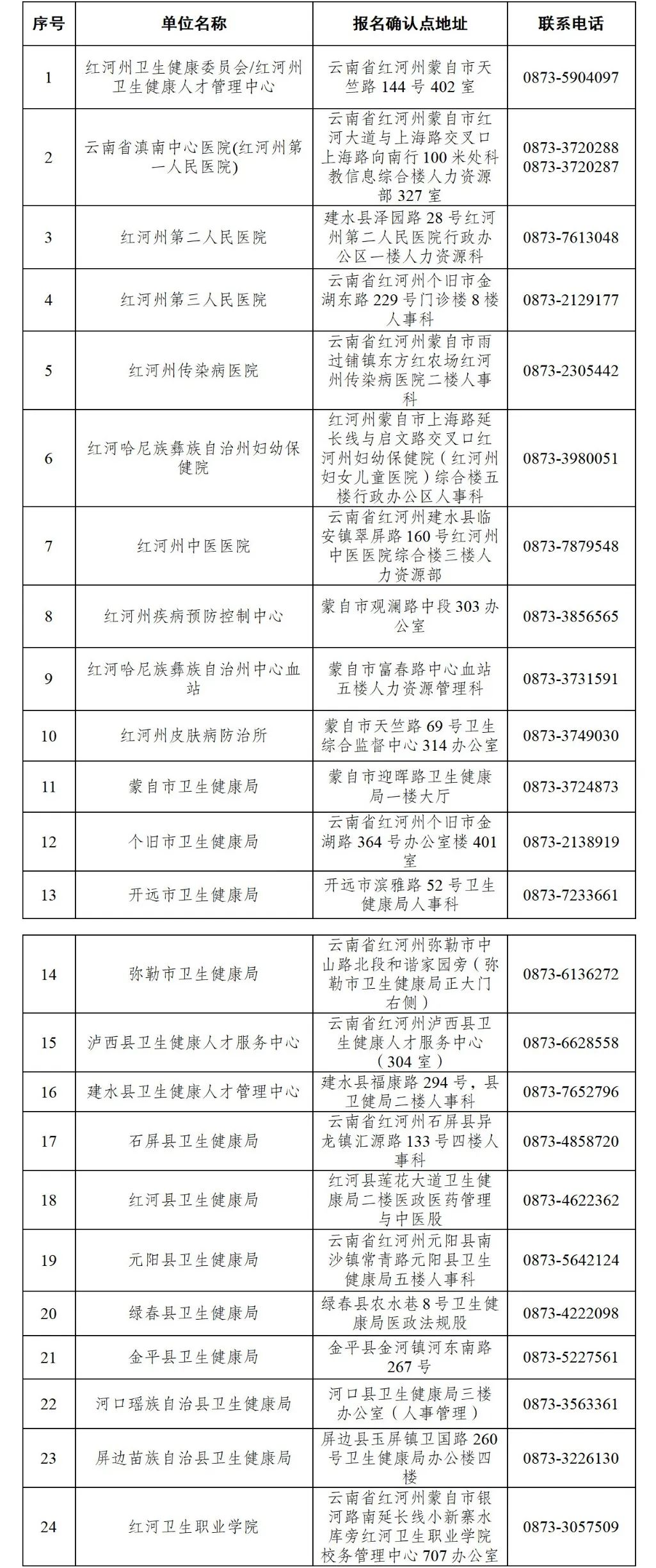 七、紅河州各報(bào)名點(diǎn)信息