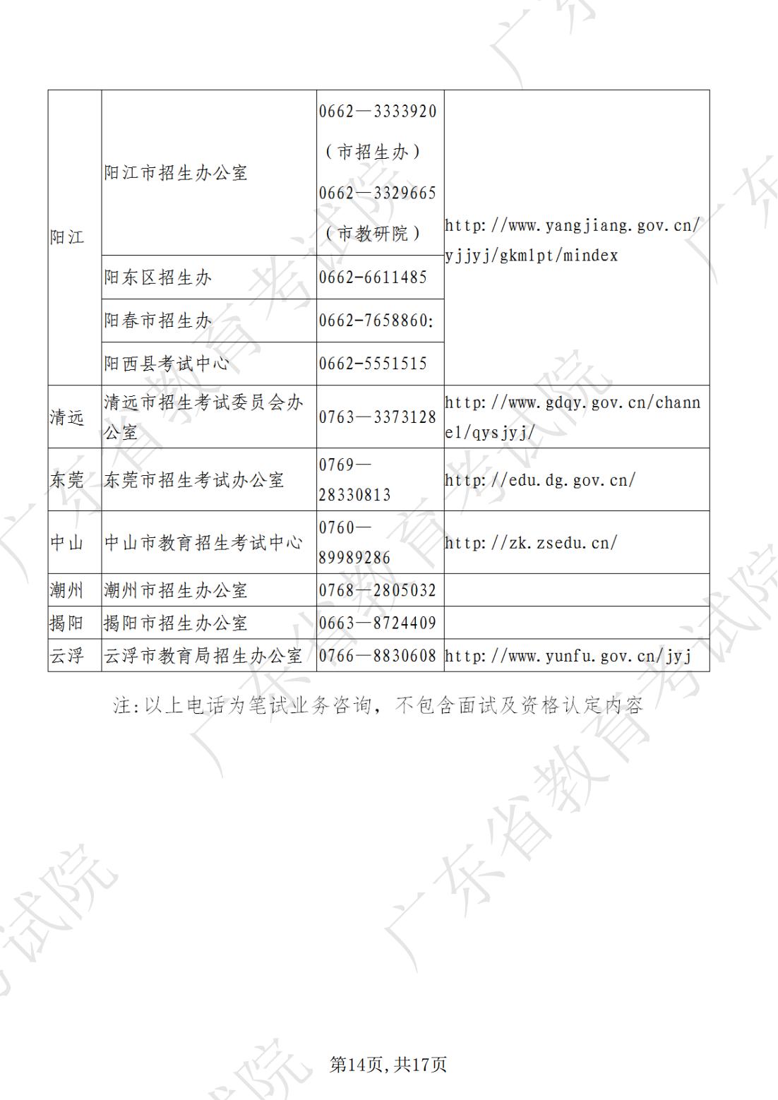 5.廣東省全國(guó)中小學(xué)教師資格考試筆試工作聯(lián)系方式
