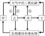 C.圖中乙、丙、丁三者組成的食物鏈?zhǔn)牵阂摇?BR> D.能量沿著食物鏈流動,在丁這一級生物體內(nèi)積累最多