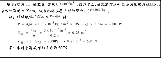 6.(1)該同學(xué)解題錯誤表現(xiàn)在對容器底部面積的計算,不能用