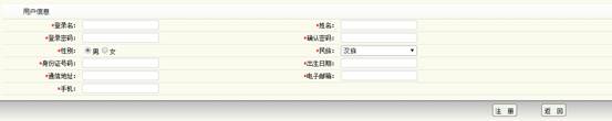 輸入賬號信息內容,帶紅色*號的欄目必須填寫,填寫完畢后點擊“注冊”即可,注冊成功后會自動返回系統(tǒng)首頁。