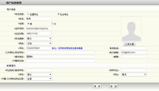 2、進入資料維護根據(jù)自身個人信息,仔細填報各個帶*號的必填項。對于應屆畢業(yè)生,學位可以填暫無和教師資格欄設有應屆畢業(yè)生正在辦理一欄;對于社會考生,需要填寫相關的資格和編號。