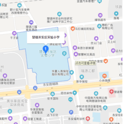 楚雄開(kāi)發(fā)區(qū)永安小學(xué):楚雄市開(kāi)發(fā)區(qū)長(zhǎng)青路8號(hào)(可乘坐12路、13路公交車(chē)到達(dá)。)