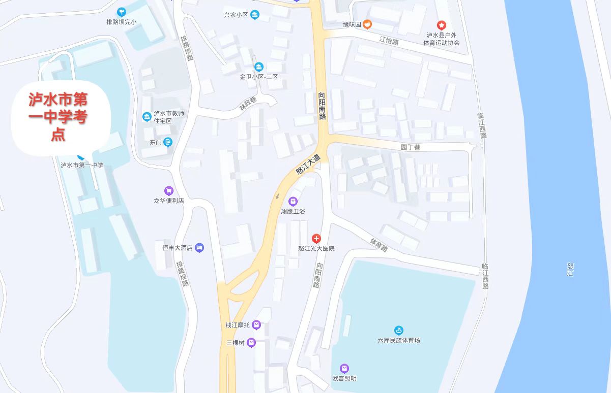怒江考區(qū)設(shè)有怒江州民族中學(xué)、瀘水市第一中學(xué)、瀘水市第一完全小學(xué)(新城校區(qū))3個考點??忌诳键c、考場號、座位號詳見本人準(zhǔn)考證,切勿走錯考點、考場,坐錯座位。