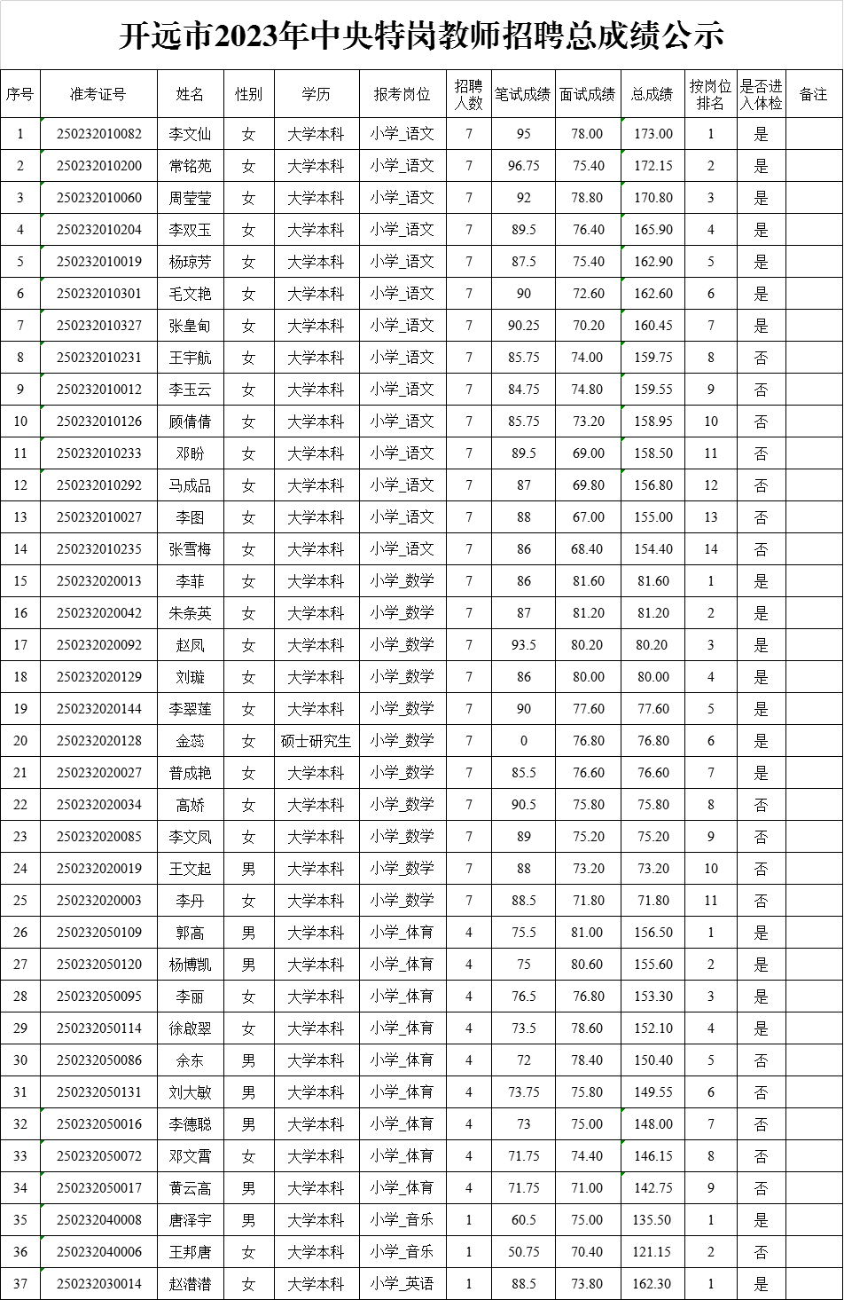 (一)所設崗位只有參加筆試考生進入資格復審的,其面試成績與筆試成績相加累計得分為總成績,從高到低按崗位數(shù)確定擬聘人員。
