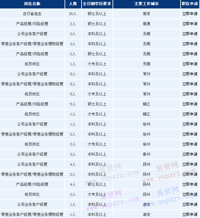 2、“總行備選生”由總行委托上海分行、北京分行、南京分行進(jìn)行招錄培養(yǎng),作為總行人才儲(chǔ)備,培養(yǎng)期滿考核合格分配至總行相關(guān)部門工作;備選生培養(yǎng)滿一年,將按一定比例選拔優(yōu)秀者作為“總行管理培訓(xùn)生”進(jìn)行重點(diǎn)培養(yǎng),培養(yǎng)目標(biāo)為總行中高級(jí)管理人才。