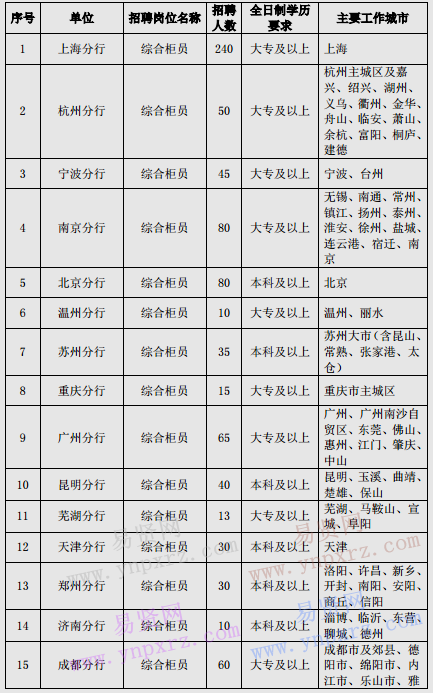注: 一名學(xué)生最多報(bào)兩家分行的柜員崗位,須明確志愿順序。