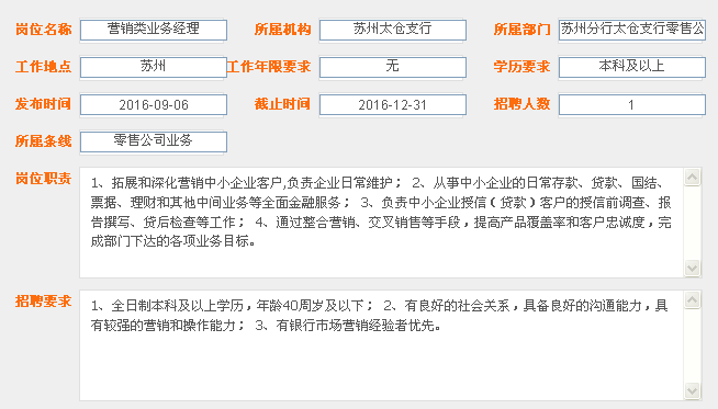 寧波銀行太倉(cāng)支行自2013年8月27日正式掛牌成立以來(lái),在太倉(cāng)社會(huì)各界和廣大客戶(hù)的關(guān)心、支持下,立足太倉(cāng),銳意進(jìn)取,積極探索特色經(jīng)營(yíng)之路,實(shí)現(xiàn)了各項(xiàng)業(yè)務(wù)的持續(xù)、快速、健康發(fā)展。寧波銀行太倉(cāng)支行堅(jiān)持秉承“誠(chéng)信敬業(yè)、合規(guī)高效、融合創(chuàng)新”的理念,努力以更好的金融服務(wù),在各個(gè)業(yè)務(wù)觸點(diǎn)上給客戶(hù)更好的服務(wù)體驗(yàn),堅(jiān)持服務(wù)地方經(jīng)濟(jì)發(fā)展,不斷創(chuàng)新業(yè)務(wù)產(chǎn)品,不斷完善服務(wù)功能;堅(jiān)持客戶(hù)至上理念,積極打造“卓越服務(wù),如影隨形”廳堂一體化服務(wù)品牌,不斷提升窗口服務(wù)水平;堅(jiān)持加強(qiáng)風(fēng)險(xiǎn)管理,深入開(kāi)展案件防控五項(xiàng)機(jī)制工作,經(jīng)受住了信用風(fēng)險(xiǎn)、道德風(fēng)險(xiǎn)的考驗(yàn)?,F(xiàn)因業(yè)務(wù)發(fā)展需要,誠(chéng)招優(yōu)秀人才加盟。