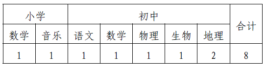 一、選聘學(xué)科及名額:擬公開選聘農(nóng)村中小學(xué)在編在職教師8名,具體崗位見附件1。