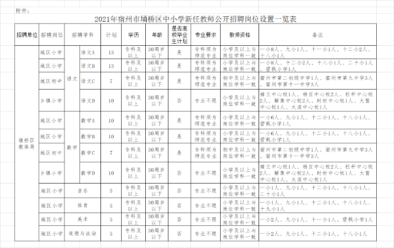 2021年宿州市埇橋區(qū)中小學(xué)新任教師公開招聘公告