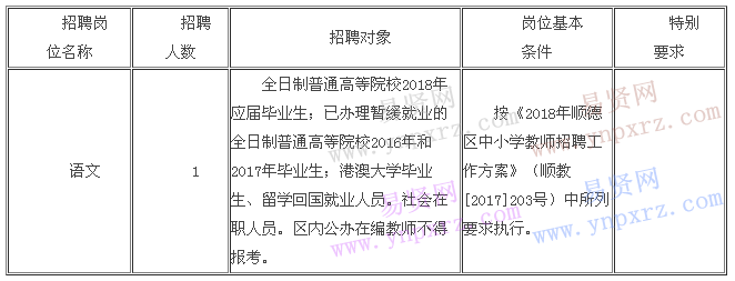 根據(jù)《廣東省事業(yè)單位公開招聘人員辦法》及《2018年順德區(qū)公辦中小學(xué)教師招聘工作方案》(順教[2017]203號)的要求,結(jié)合我校師資需求缺口實際,現(xiàn)就2018年我校面向社會公開招聘教師公告如下: